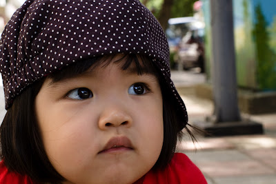 不過小傢伙跟她媽咪一樣,戴起帽子來都很有味道很好看。只是媽咪自己帽子也買了好幾頂,出門卻很少看她在戴。