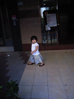 注意到小傢伙腳下的鞋子跟前兩張不一樣了嗎?連逛個小巷子都可以買衣服買鞋子。
