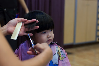 只是從以前幫小傢伙剪頭髮就不是件容易事,哭哭鬧鬧全身扭動是一定要的。幸好現在長大了一點,而且設計師及場地環境也比較熟悉,才讓她稍微可以乖乖的聽從指示。